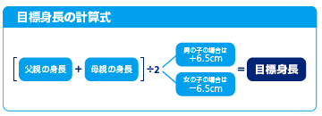 A. 身長は、遺伝の影響が大きいので、両親や祖父母の身長の影響を大きく受けます。両親の身長から、子どもの将来の身長の目安(目標身長)を計算することもできます。両親の身長を足して2で割り平均値を算出し、その値に男の子であれば6.5cmを足した値、女の子であれば6.5cmを引いた値が目標身長となります。あくまで目安ですが、このことから両親の身長は子どもの身長に強く影響することがわかります。
